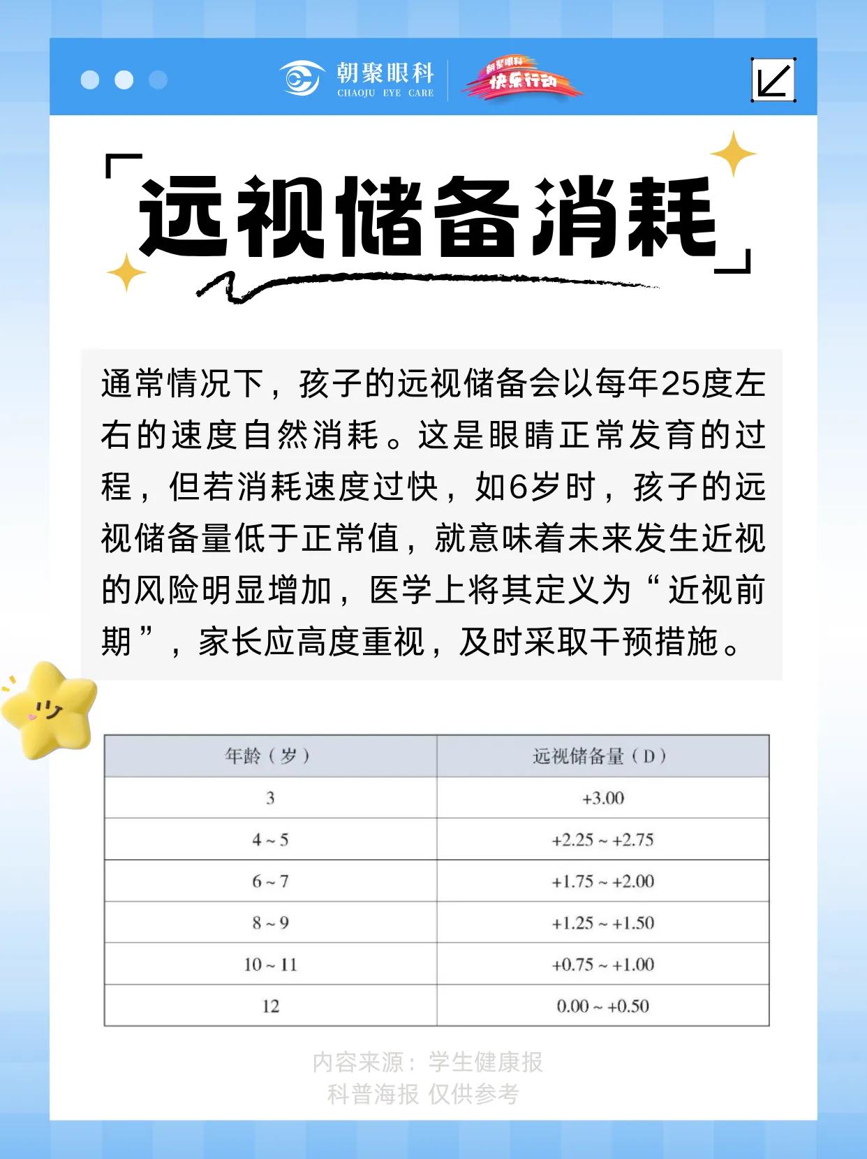 远视储备,是孩子眼睛的“防近视盾牌”。若过度消耗,近视风险将大幅提升。核心警报:⚠️ 6岁远视储备 < +1.75D⚠️ 眼轴年增长 > 0.18mm (6-12岁)防控关键:定期测量眼轴,建立屈光档案。建议从3岁起,每3-6个月检查一次,精准追踪视力发育趋势,及时干预。